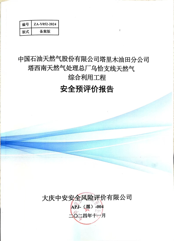 中國石油天然氣股份有限公司塔里木油田分公司 塔西南天然氣處理總廠烏恰支線天然氣綜合利用工程安全預(yù)評價(jià)報(bào)告