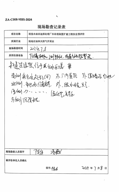 塔里木油田迪那處理廠水處理裝置擴(kuò)建工程安全預(yù)評(píng)價(jià)