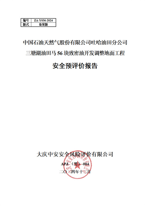 中國石油天然氣股份有限公司吐哈油田分公司三塘湖油田馬56塊致密油開發(fā)調整地面工程 安全評價報告