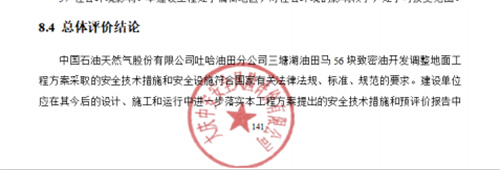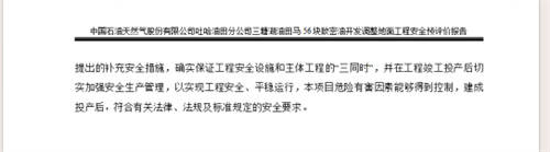 中國石油天然氣股份有限公司吐哈油田分公司三塘湖油田馬56塊致密油開發(fā)調整地面工程方案采取的安全技術措施和安全設施符合國家有關法律法規(guī)、標準、規(guī)范的要求。建設單位應在其今后的設計、施工和運行中進一步落實本工程方案提出的安全技術措施和預評價報告中提出的補充安全措施,確實保證工程安全設施和主體工程的“三同時”,并在工程竣工投產后切實加強安全生產管理,以實現工程安全、平穩(wěn)運行,本項目危險有害因素能夠得到控制,建成投產后,符合有關法律、法規(guī)及標準規(guī)定的安全要求。 |