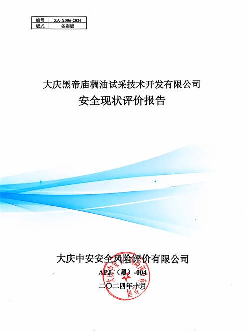 大慶黑帝廟稠油試采技術(shù)開發(fā)有限公司安全現(xiàn)狀評價報告