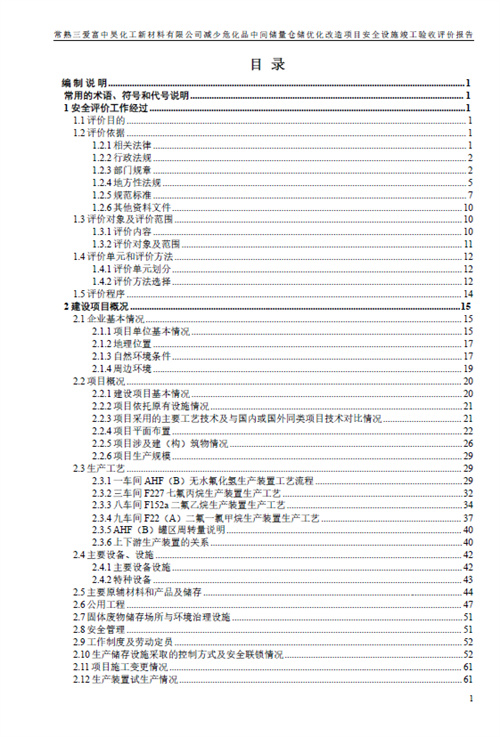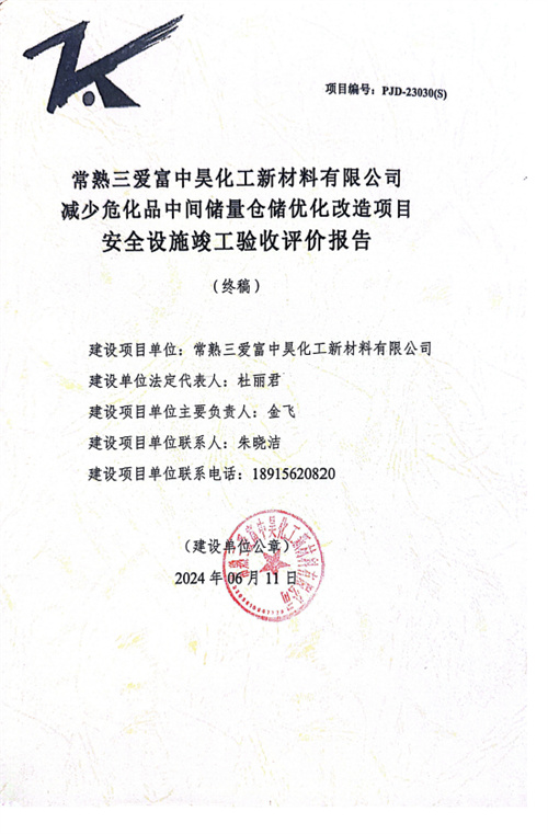 常熟三愛(ài)富中昊化工新材料有限公司減少?;分虚g儲(chǔ)量倉(cāng)儲(chǔ)優(yōu)化改造項(xiàng)目安全設(shè)施竣工驗(yàn)收評(píng)價(jià)報(bào)告 |
