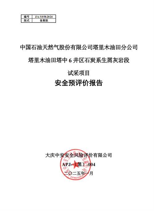 中國石油天然氣股份有限公司塔里木油田分公司塔里木油田塔中6井區(qū)石炭系生屑灰?guī)r段試采項目安全預(yù)評價報告