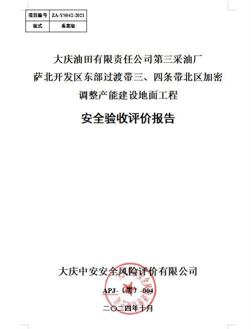 大慶油田有限責(zé)任公司第三采油廠薩北開發(fā)區(qū)東部過渡帶三、四條帶北區(qū)加密調(diào)整產(chǎn)能建設(shè)地面工程安全驗(yàn)收評(píng)價(jià)報(bào)告