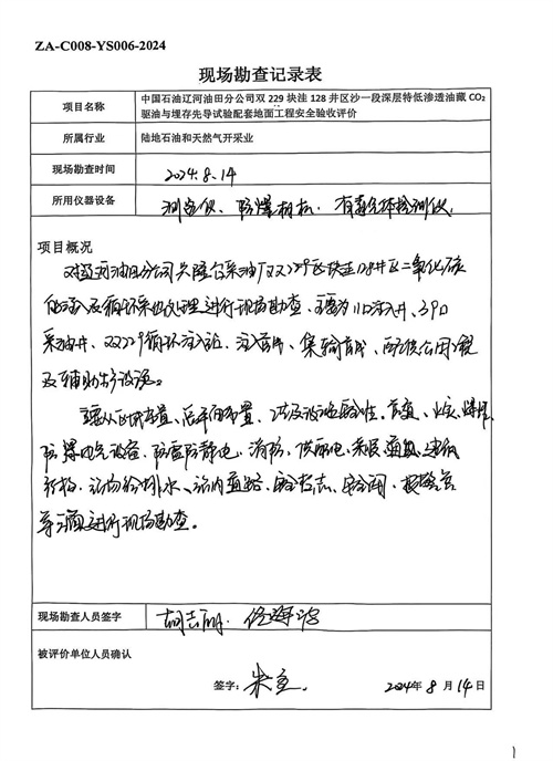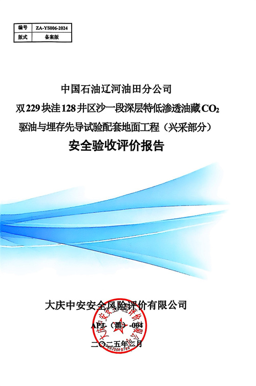 中國石油遼河油田分公司雙229塊洼128井區(qū)沙一段深層特低滲透油藏CO2驅(qū)油與埋存先導(dǎo)試驗(yàn)配套地面工程(興采部分)安全驗(yàn)收評價(jià)報(bào)告 |