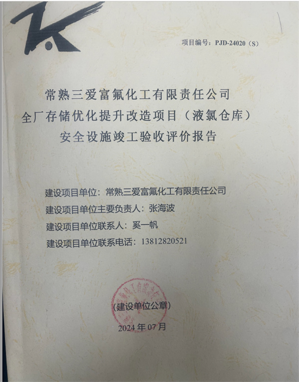 常熟三愛富氟化工有限責(zé)任公司全廠存儲(chǔ)優(yōu)化提升改造項(xiàng)目(液氯倉庫)安全設(shè)施竣工驗(yàn)收評(píng)價(jià)報(bào)告