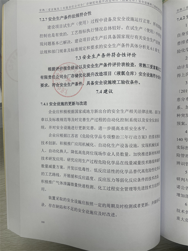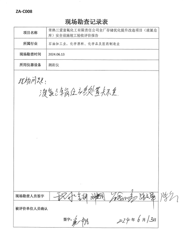 常熟三愛富氟化工有限責(zé)任公司全廠存儲(chǔ)優(yōu)化提升改造項(xiàng)目(液氯倉庫)安全設(shè)施符合設(shè)計(jì)要求,具備安全設(shè)施竣工驗(yàn)收條件。