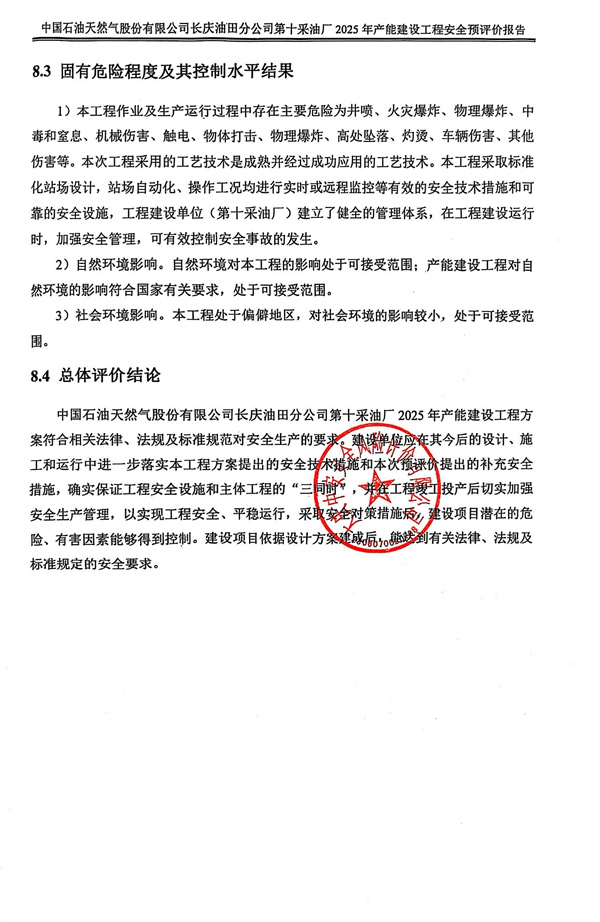 中國(guó)石油天然氣股份有限公司長(zhǎng)慶油田分公司第十采油廠2025年產(chǎn)能建設(shè)工程安全預(yù)評(píng)價(jià)報(bào)告 |