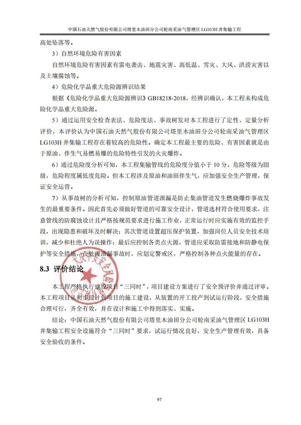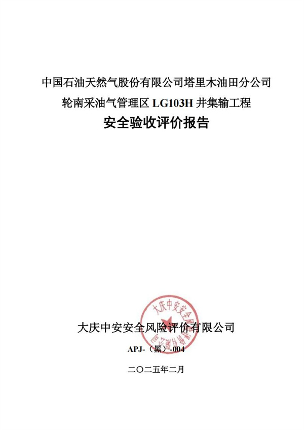 中國石油天然氣股份有限公司塔里木油田分公司輪南采油氣管理區(qū)LG103H井集輸工程 安全驗(yàn)收評(píng)價(jià)