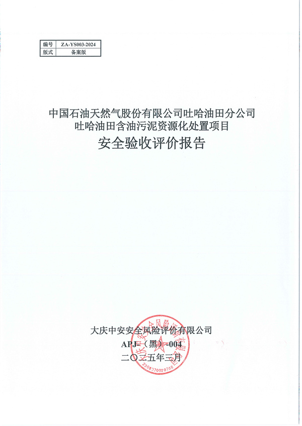 中國石油天然氣股份有限公司吐哈油田分公司吐哈油田含油污泥資源化處置項(xiàng)目 安全驗(yàn)收評(píng)價(jià)報(bào)告