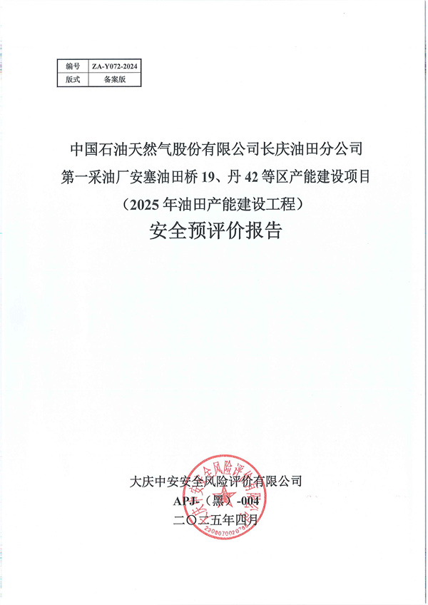 中國石油天然氣股份有限公司長慶油田分公司第一采油廠安塞油田橋19、丹42等區(qū)產(chǎn)能建設(shè)項(xiàng)目(2025年油田產(chǎn)能建設(shè)工程)安全預(yù)評價(jià)報(bào)告 |