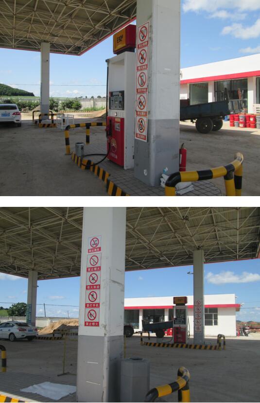 利舊2臺(tái)加油機(jī)(1臺(tái)為92#、95#雙槍加油機(jī),1臺(tái)為4槍柴油機(jī)),調(diào)用2臺(tái)加油機(jī)(1臺(tái)為92#95#雙槍加油機(jī),1臺(tái)為雙槍柴油機(jī)),采用混凝土防滲加油機(jī)底座;新建4座加油島,配套防撞柱8套;罩棚網(wǎng)架檢測(cè)合格后利舊維修,投影面積為396m2;更換照明燈及應(yīng)急燈。