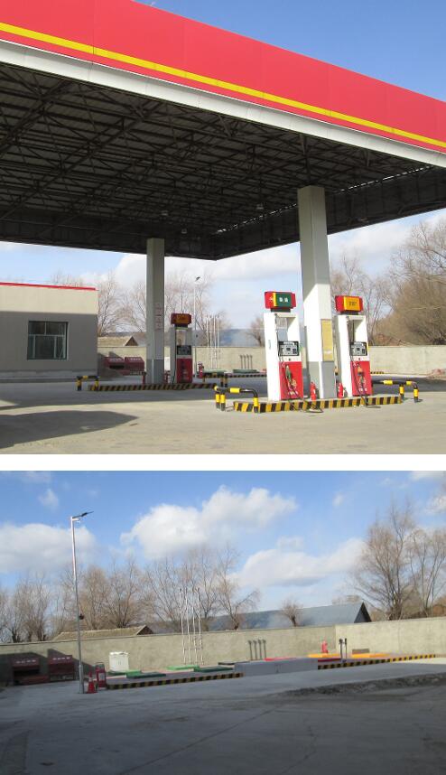 1)原油罐清洗,檢測(cè)合格后拆除,吊裝外運(yùn);新建非承重SF罐區(qū)1座,設(shè)置30m3雙層汽油儲(chǔ)罐3臺(tái)、30m3雙層柴油儲(chǔ)罐2臺(tái),油罐采用混凝土防滲操作井及非承重井蓋10套;工藝管線拆除并重新敷設(shè),加油管線采用導(dǎo)靜電雙層熱塑性塑料,其他工藝管線采用20#無(wú)縫鋼管;設(shè)置卸油和分散式加油油氣回收系統(tǒng);新建6孔成品卸油口箱1座(底部防滲)。 2)利舊改建站房1座,建筑面積161.12㎡。 3)罩棚由專業(yè)公司進(jìn)行檢測(cè)合格后利舊,螺栓球網(wǎng)架結(jié)構(gòu),水平投影面積429㎡,凈空高度5.5m。 4)修復(fù)4座加油島,新建防撞柱8個(gè);檢測(cè)合格利舊4臺(tái)雙槍單油品自吸式汽油加油機(jī)(汽油槍帶油氣回收功能)、2臺(tái)雙槍單油品自吸式柴油加油機(jī);新建混凝土防滲加油機(jī)底座。 5)新增雙層油罐及雙層管線滲漏監(jiān)測(cè)系統(tǒng);新建緊急切斷系統(tǒng)、卸油靜電接地系統(tǒng)、人體靜電釋放裝置、聲光報(bào)警; 6)修復(fù)硬化地面,面積200㎡;利舊高2.2米實(shí)體圍墻148m。 |