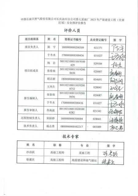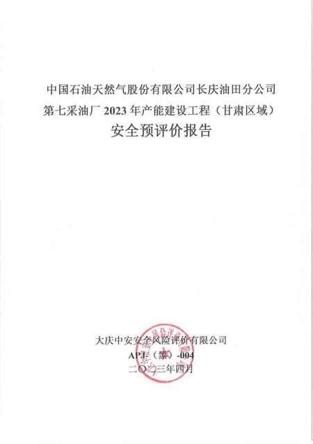 中國石油天然氣股份有限公司長慶油田分公司第七采油廠2023年產(chǎn)能建設工程(甘肅區(qū)域)安全預評價安全評價報告