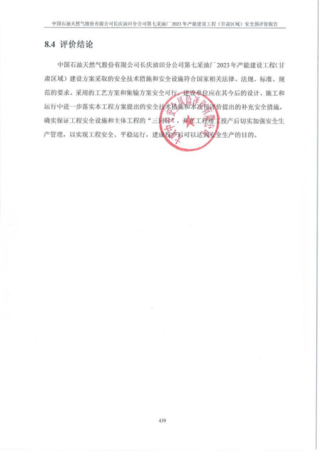 中國石油天然氣股份有限公司長慶油田分公司第七采油廠2023年產(chǎn)能建設工程(甘肅區(qū)域)建設方案采取的安全技術措施和安全設施符合國家相關法律、法規(guī)、標準、規(guī)范的要求。采用的工藝方案和集輸方案安全可行。建設單位應在其今后的設計、施工和運行中進一步落實本工程方案提出的安全技術措施和本次預評價提出的補充安全措施,確實保證工程安全設施和主體工程的“三同時”,并在工程竣工投產(chǎn)后切實加強安全生產(chǎn)管理,以實現(xiàn)工程安全、平穩(wěn)運行,建成投產(chǎn)后可以達到安全生產(chǎn)的目的。