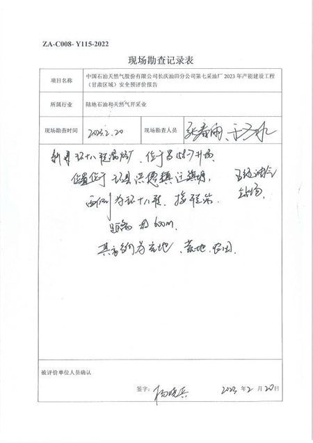 中國石油天然氣股份有限公司長慶油田分公司第七采油廠2023年產(chǎn)能建設工程(甘肅區(qū)域)安全預評價