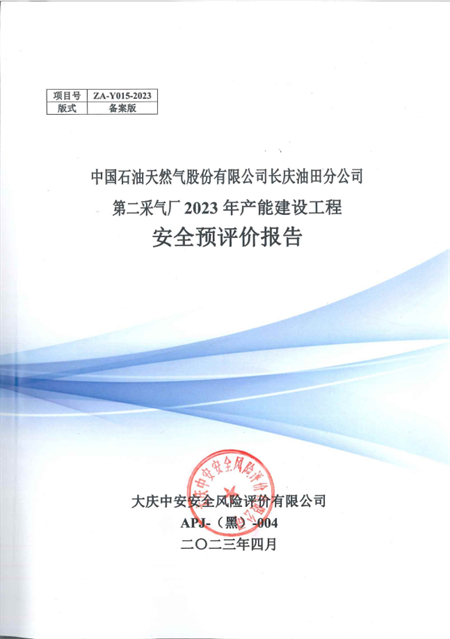 中國(guó)石油天然氣股份有限公司長(zhǎng)慶油田分公司第二采氣廠2023年產(chǎn)能建設(shè)工程安全預(yù)評(píng)價(jià)報(bào)告