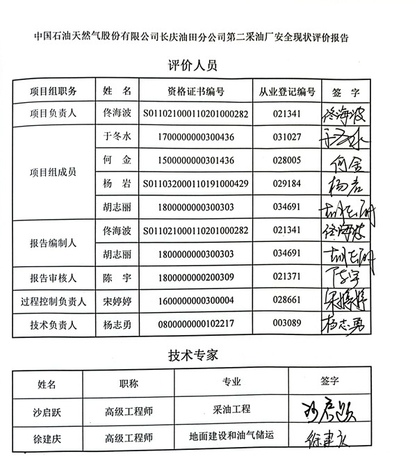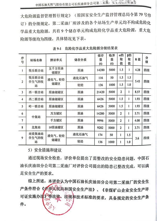 中國石油天然氣股份有限公司長慶油田分公司第二采油廠安全現(xiàn)狀評價