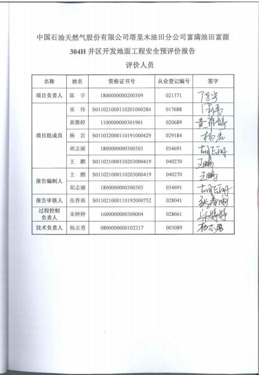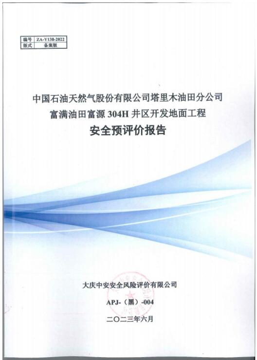 中國(guó)石油天然氣股份有限公司塔里木油田分公司富滿油田富源304H井區(qū)開發(fā)地面工程 安全評(píng)價(jià)報(bào)告