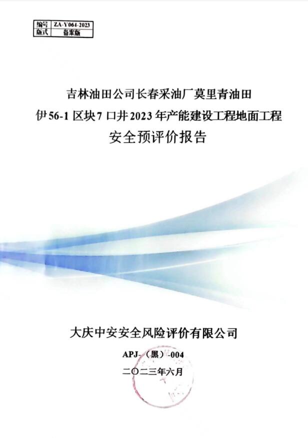 吉林油田公司長春采油廠莫里青油田伊56-1區(qū)塊7口井2023年產(chǎn)能建設(shè)工程地面工程安全評價(jià)報(bào)告