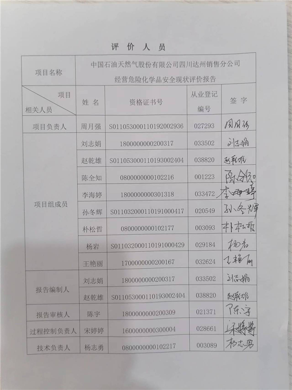 到現(xiàn)場開展安全評價工作的人員名單 |