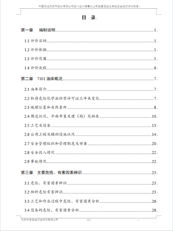 本次評價范圍為中國石油天然氣股份有限公司四川達(dá)州銷售分公司7101油庫的周邊環(huán)境、平面布置、工藝、設(shè)備、電氣、建筑、安全管理等是否符合現(xiàn)行規(guī)范安全要求進(jìn)行安全評價。本次安全評價不包括:公司下屬加油站;鐵路運輸危險化學(xué)品專用線及其附屬設(shè)施(鐵路裝卸棧橋、卸油泵房等)。 |