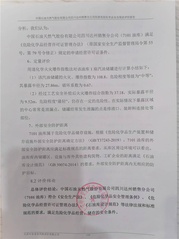 中國石油天然氣股份有限公司四川達(dá)州銷售分公司經(jīng)營危險化學(xué)品安全現(xiàn)狀評價報告