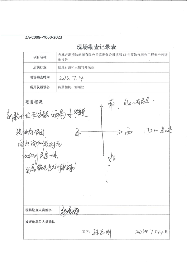 吉林吉港清潔能源有限公司鎮(zhèn)賚分公司德深65井零散氣回收工程安全預(yù)評(píng)價(jià)報(bào)告