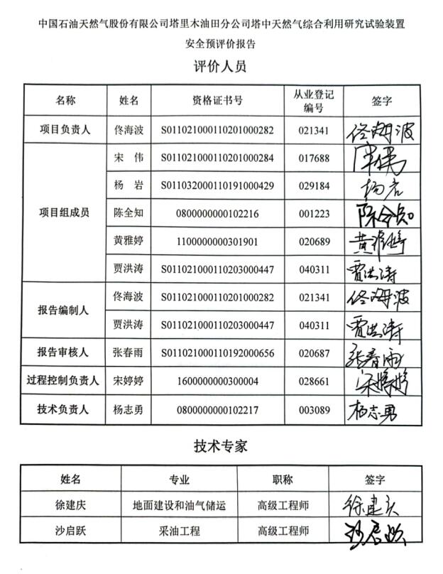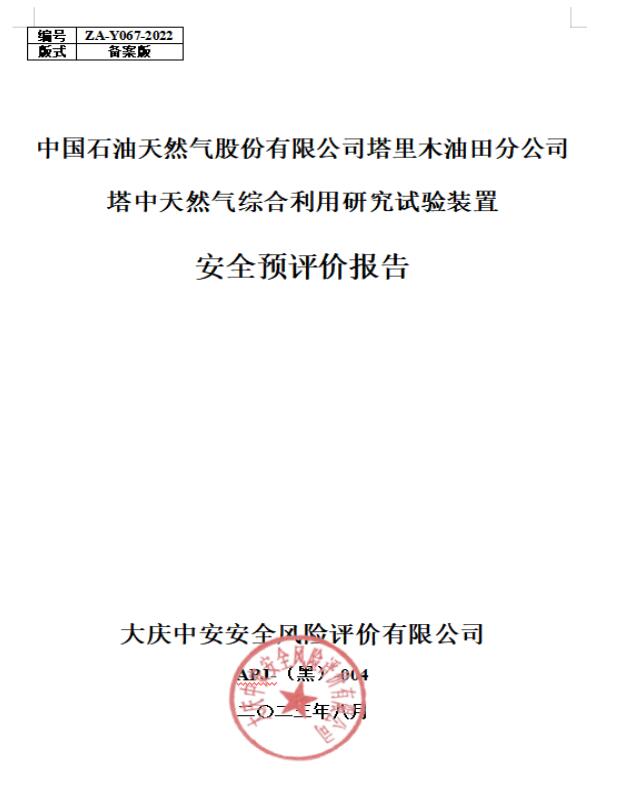 中國(guó)石油天然氣股份有限公司塔里木油田分公司塔中天然氣綜合利用研究試驗(yàn)裝置安全預(yù)評(píng)價(jià)報(bào)告