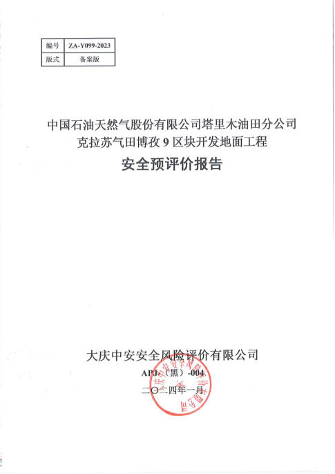 中國石油天然氣股份有限公司塔里木油田分公司克拉蘇氣田博孜9區(qū)塊開發(fā)地面工程 安全預(yù)評價