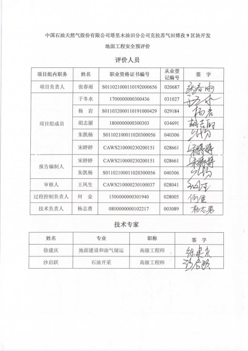 中國石油天然氣股份有限公司塔里木油田分公司克拉蘇氣田博孜9區(qū)塊開發(fā)地面工程安全預(yù)評價 |