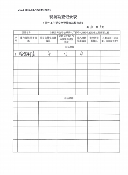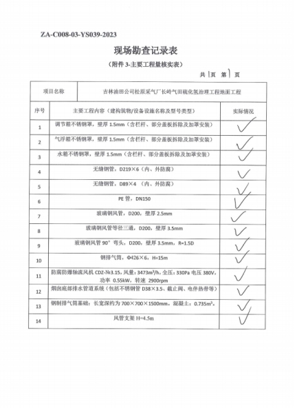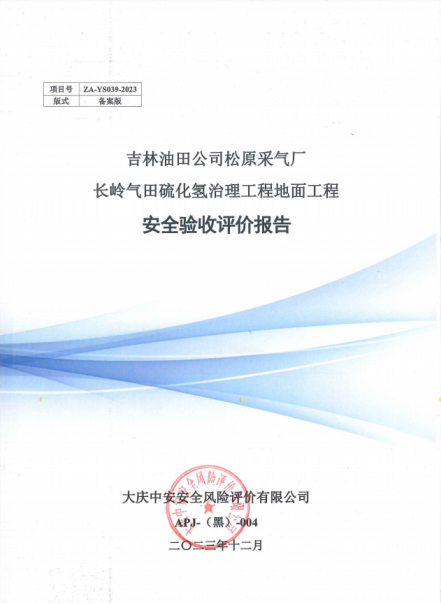 吉林油田公司松原采氣廠(chǎng)長(zhǎng)嶺氣田硫化氫治理工程地面工程安全驗(yàn)收評(píng)價(jià)報(bào)告