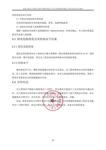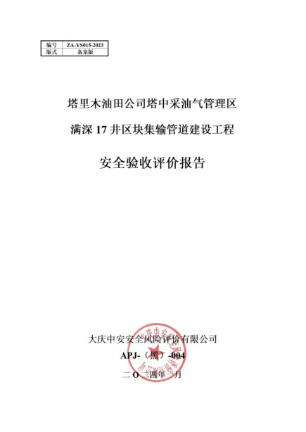 塔里木油田公司塔中采油氣管理區(qū)滿深17井區(qū)塊集輸管道建設工程安全驗收評價報告