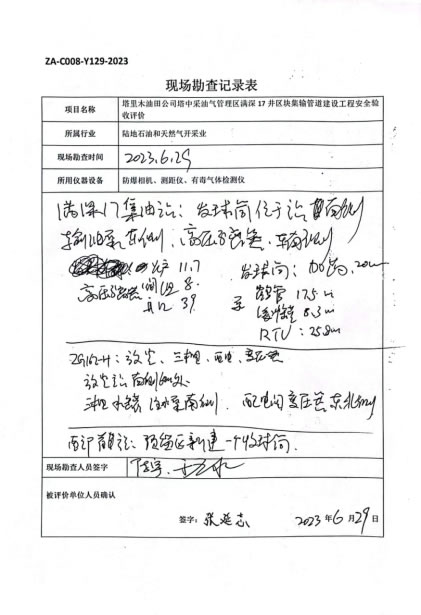 塔里木油田公司塔中采油氣管理區(qū)滿深17井區(qū)塊集輸管道建設工程安全驗收評價