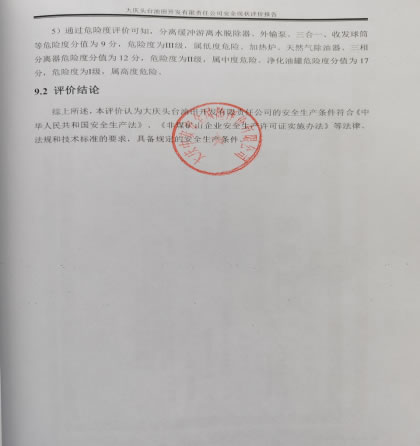 大慶頭臺(tái)油田開(kāi)發(fā)有限責(zé)任公司安全現(xiàn)狀評(píng)價(jià)報(bào)告 |