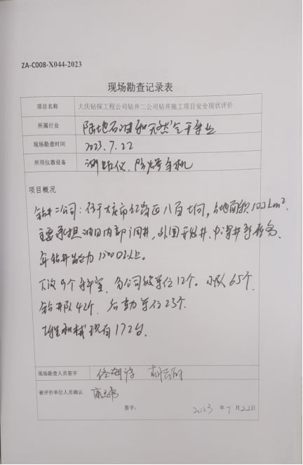 大慶鉆探工程公司鉆井二公司鉆井施工項(xiàng)目安全現(xiàn)狀評(píng)價(jià)報(bào)告信息公示表