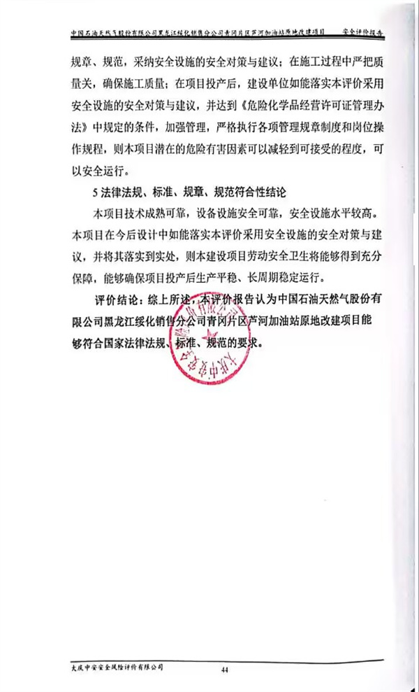 中國石油天然氣股份有限公司黑龍江綏化銷售分公司青岡片區(qū)蘆河加油站原地改建項(xiàng)目能夠符合國家法律法規(guī)、標(biāo)準(zhǔn)、規(guī)范的要求。 |