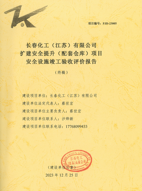 長(zhǎng)春化工(江蘇)有限公司擴(kuò)建安全提升(配套倉(cāng)庫(kù))項(xiàng)目安全設(shè)施竣工驗(yàn)收評(píng)價(jià)報(bào)告