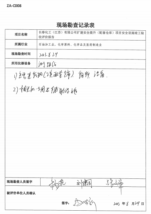 長(zhǎng)春化工(江蘇)有限公司擴(kuò)建安全提升(配套倉(cāng)庫(kù))項(xiàng)目安全設(shè)施符合設(shè)計(jì)要求,具備安全設(shè)施竣工驗(yàn)收條件。