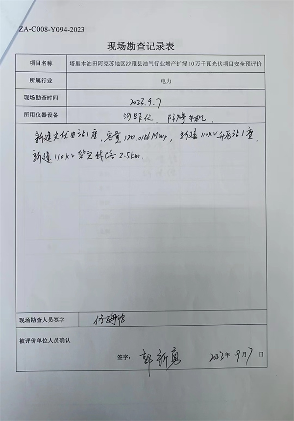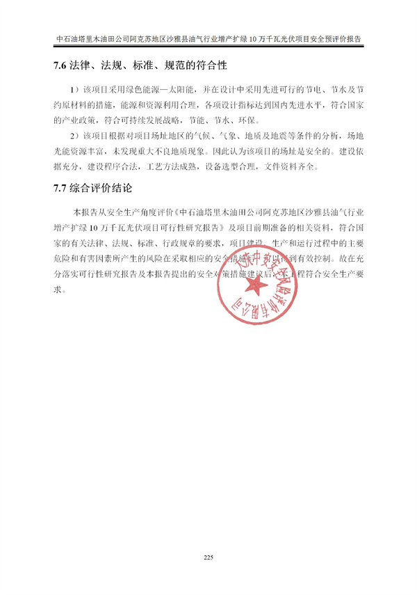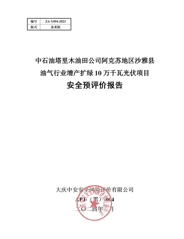 中石油塔里木油田公司阿克蘇地區(qū)沙雅縣油氣行業(yè)增產(chǎn)擴(kuò)綠10萬千瓦光伏項(xiàng)目安全預(yù)評價報(bào)告