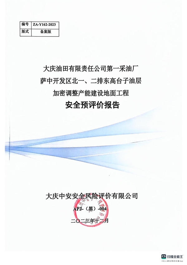 大慶油田有限責任公司第一采油廠薩中開發(fā)區(qū)北一、二排東高臺子油層加密調整產能建設地面工程安全預評價報告