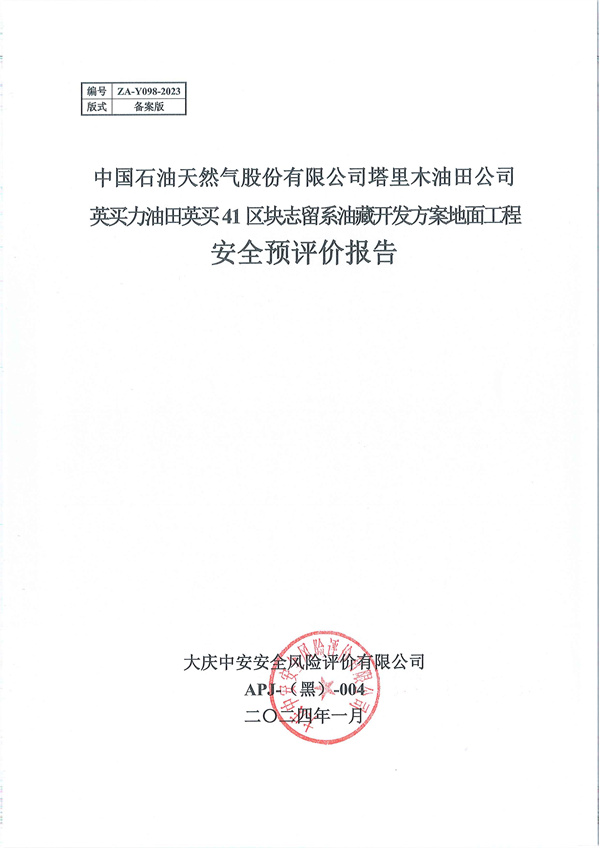 中國石油天然氣股份有限公司塔里木油田公司英買力油田英買41區(qū)塊志留系油藏開發(fā)方案地面工程安全預(yù)評價報告