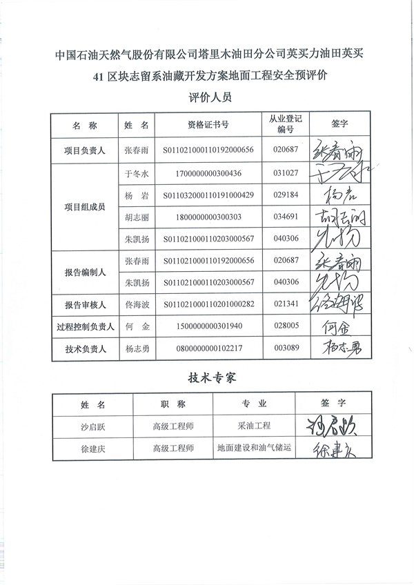 中國石油天然氣股份有限公司塔里木油田公司英買力油田英買41區(qū)塊志留系油藏開發(fā)方案地面工程安全預(yù)評價報告 |