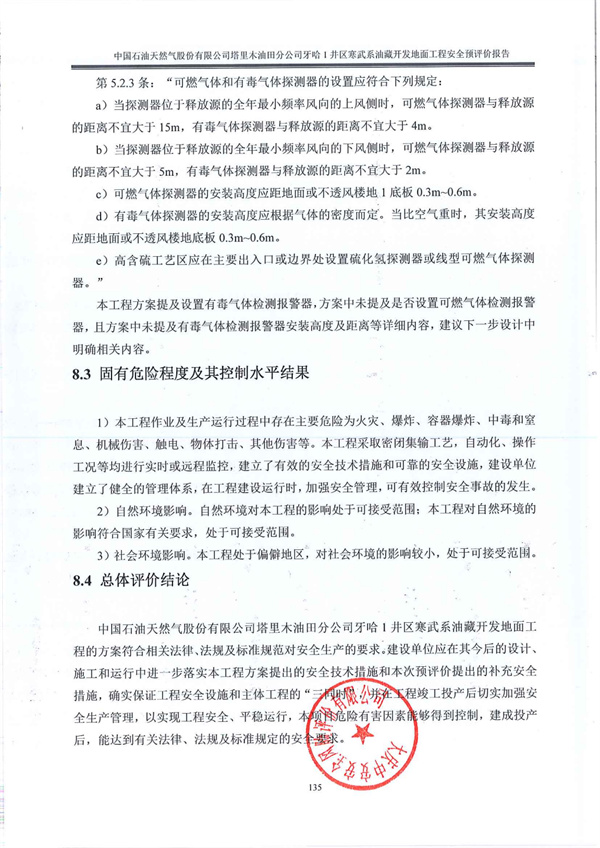 中國(guó)石油天然氣股份有限公司塔里木油田分公司牙哈1井區(qū)寒武系油藏開(kāi)發(fā)地面工程的方案符合相關(guān)法律、法規(guī)及標(biāo)準(zhǔn)規(guī)范對(duì)安全生產(chǎn)的要求。建設(shè)單位應(yīng)在其今后的設(shè)計(jì)、施工和運(yùn)行中進(jìn)一步落實(shí)本工程方案提出的安全技術(shù)措施和本次預(yù)評(píng)價(jià)提出的補(bǔ)充安全措施,確實(shí)保證工程安全設(shè)施和主體工程的“三同時(shí)”,并在工程竣工投產(chǎn)后切實(shí)加強(qiáng)安全生產(chǎn)管理,以實(shí)現(xiàn)工程安全、平穩(wěn)運(yùn)行,本項(xiàng)目危險(xiǎn)有害因素能夠得到控制,建成投產(chǎn)后,能達(dá)到有關(guān)法律、法規(guī)及標(biāo)準(zhǔn)規(guī)定的安全要求。 |