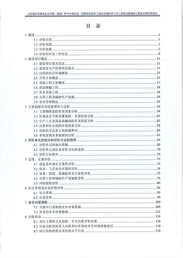 大慶油田有限責(zé)任公司第一采油廠薩中開發(fā)區(qū)北一區(qū)斷西東塊井下油水分離注采工藝工業(yè)性試驗(yàn)地面工程安全預(yù)評(píng)價(jià)報(bào)告