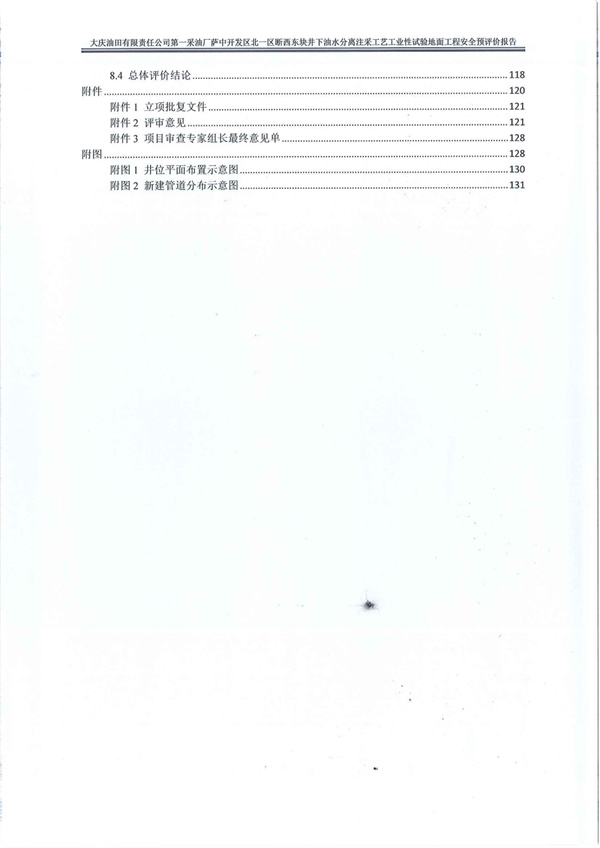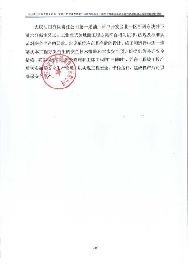 大慶油田有限責(zé)任公司第一采油廠薩中開發(fā)區(qū)北一區(qū)斷西東塊井下油水分離注采工藝工業(yè)性試驗(yàn)地面工程安全預(yù)評(píng)價(jià)報(bào)告 |