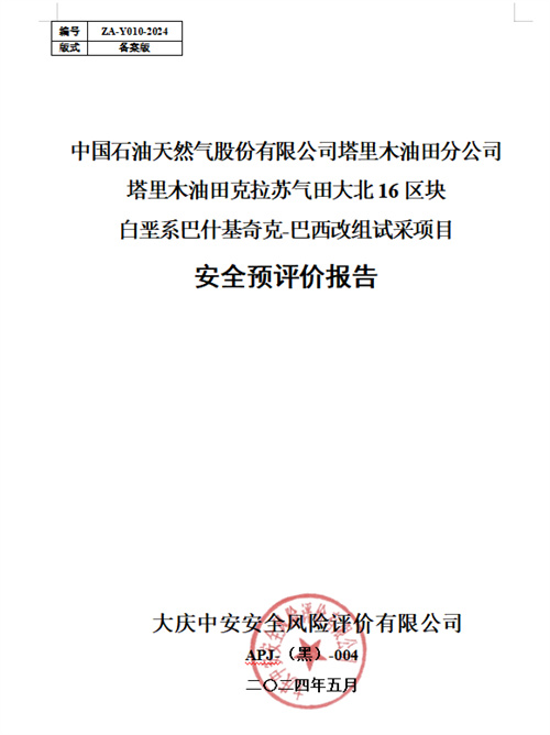中國石油天然氣股份有限公司塔里木油田分公司塔里木油田克拉蘇氣田大北16區(qū)塊白堊系巴什基奇克-巴西改組試采項目安全預評價報告