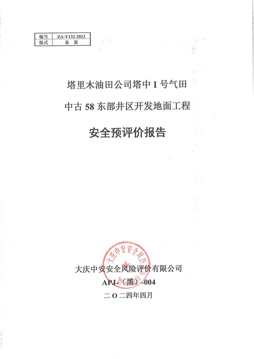 塔里木油田公司塔中I號氣田中古58東部井區(qū)開發(fā)地面工程安全預(yù)評價報告