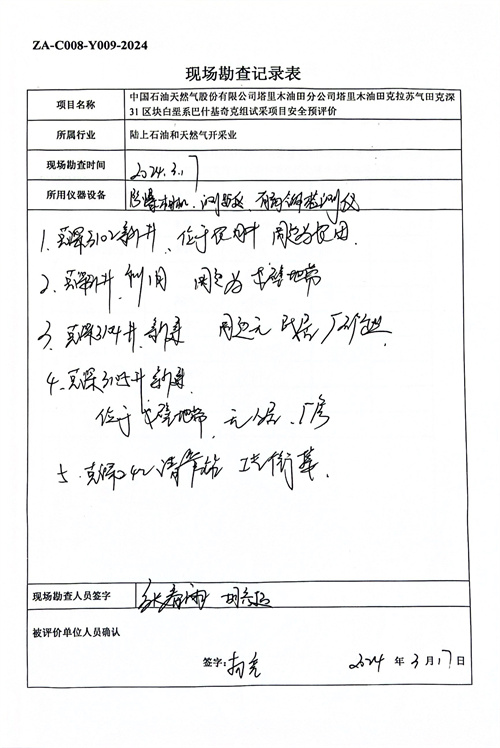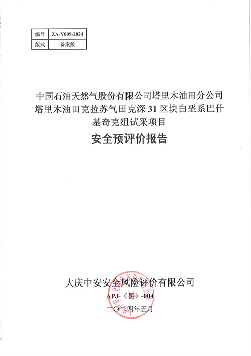 中國石油天然氣股份有限公司塔里木油田克拉蘇氣田克深31區(qū)塊白堊系巴什基奇克組試采項(xiàng)目安全預(yù)評價