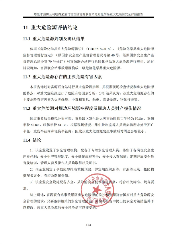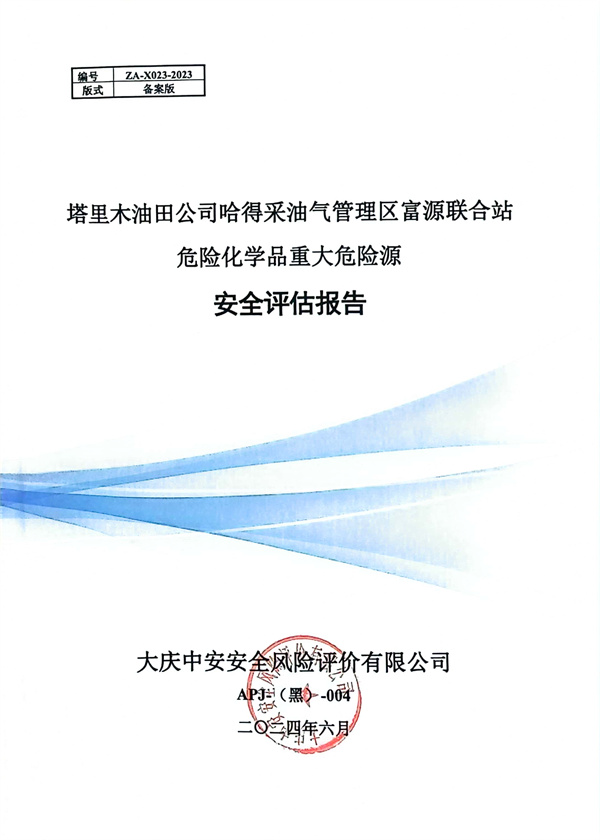 塔里木油田公司哈得采油氣管理區(qū)富源聯(lián)合站危險化學品重大危險源安全評估報告